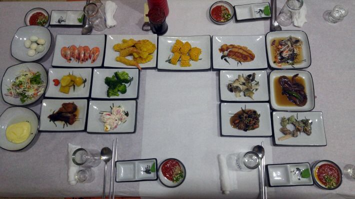 푸짐한 보조음식만 하더라도 애주가는 소주 몇 병 정도는 마시고도 남을 정도입니다.