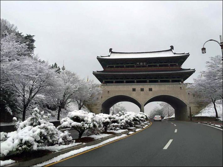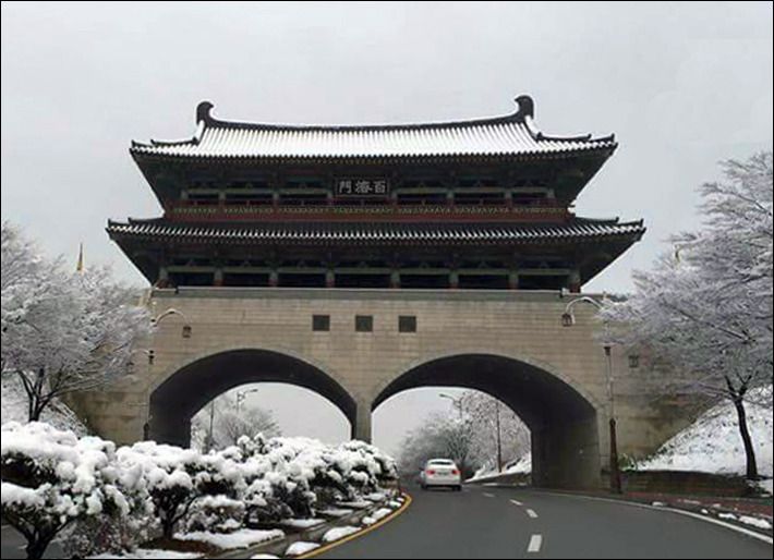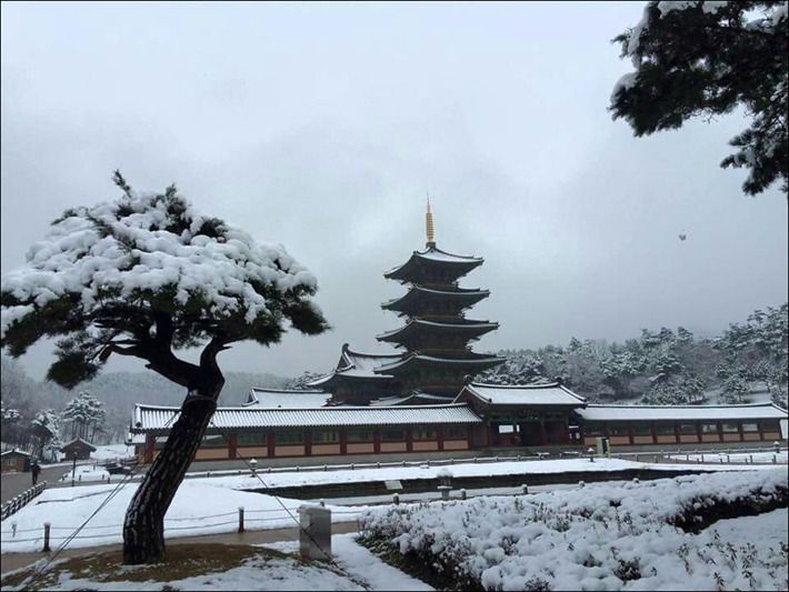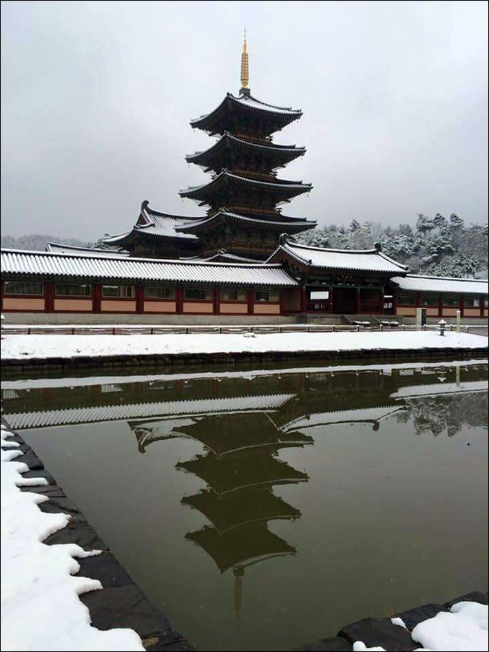지인이 보내 준 눈 내린 백제문화단지 설경.