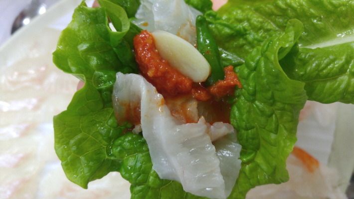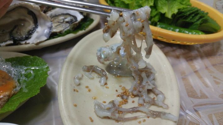 광어와 피조개 등 해산물을 시켜 초장집에서 즐거운 시간을 보냈습니다.