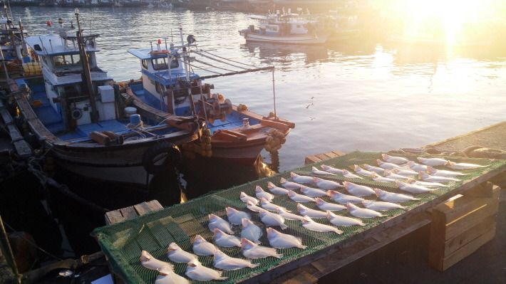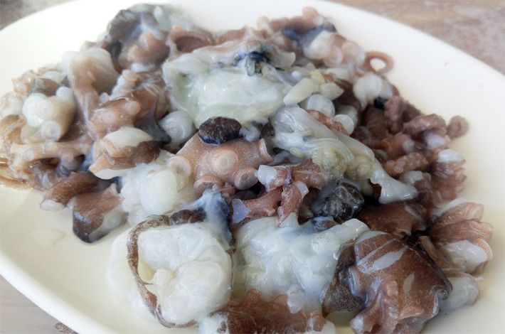 시장 한 귀퉁이에서 가오리 마리와 낙지 두 마리를 샀습니다.