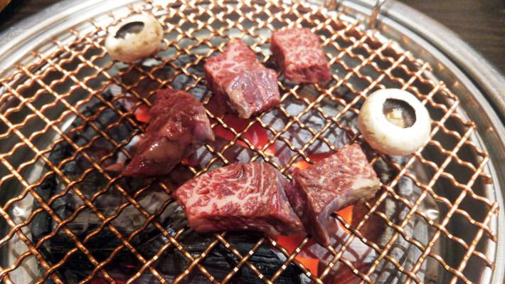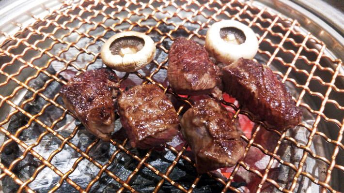 고기도 불판 위에 딱 두 조각이 남았습니다.