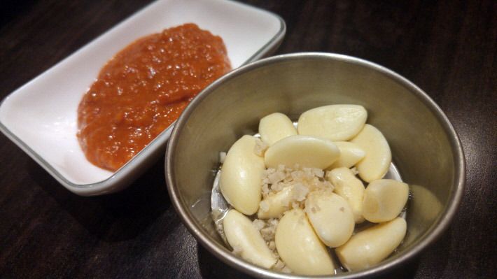 고기 집이라 여러 가지 보조음식이 많이 나와서, 본 메뉴인 고기가 나오기 전, 소주를 벌써 1병을 넘게 마셨습니다.