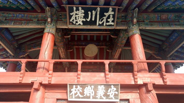 안의향교는 다른 곳의 향교와는 달리 입구에 선 웅장한 규모의 재천루의 누각이 시각을 사로잡는다.