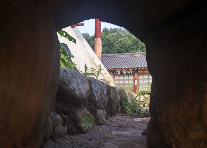입구에 선 안내 표지판만 읽어보고 걸음을 돌리는 그때 담장 아래 뚫린 구멍 사이로 고양이 한 마리가 인사를 한다.