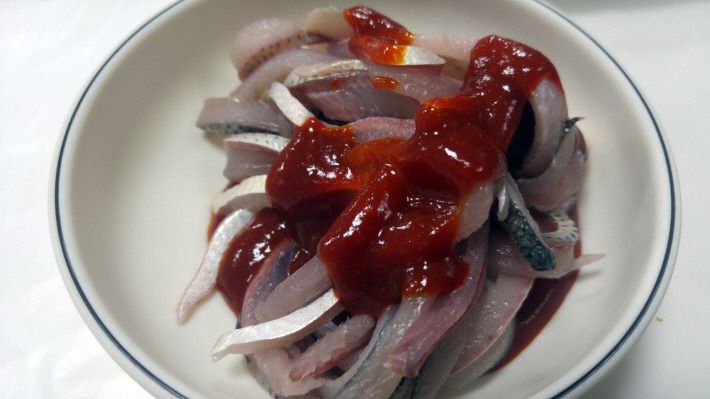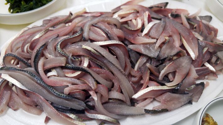 서천군 서천읍에 소재한 서천특화시장에서 먹은 전어 회.