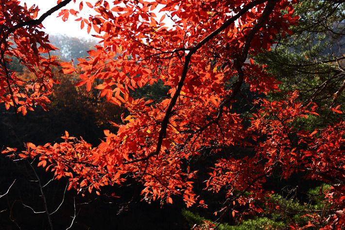 지난해 힘들었던 봉정암 산행에서 만났던 붉은 단풍입니다.