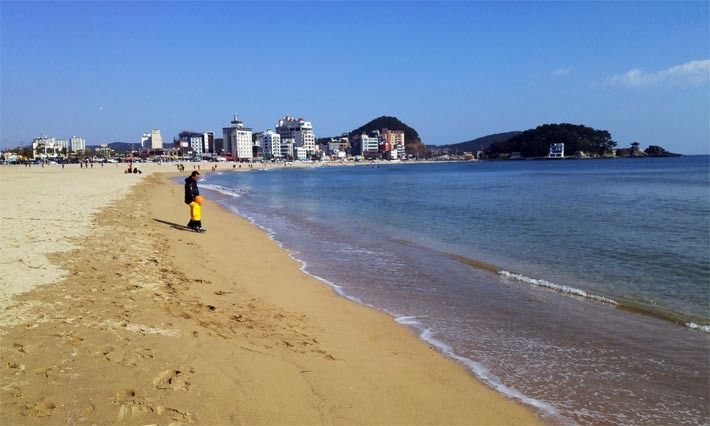 아이와 즐기는 겨울의 낭만이 있는 부산 해운대 송정해수욕장.