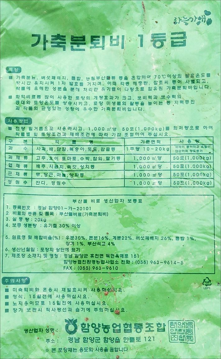 땅심을 높이기 위해 유기질 비료인 가축용 퇴비를 넣어야 하는데, 구입부터가 문제의 시작입니다.