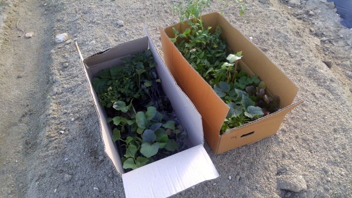 시장에서 채소 모종을 구입하여 밭에 심었습니다.