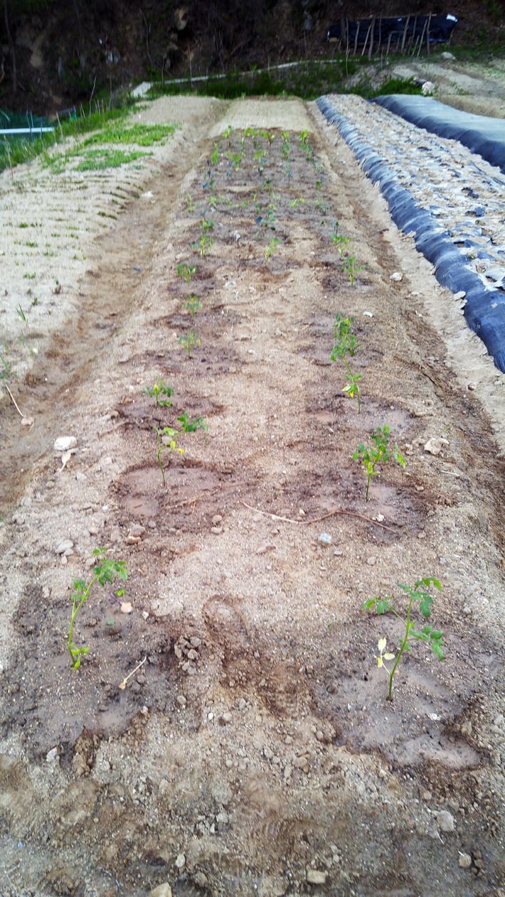 기분 상한 마음을 접고 사 온 채소 모종을 정성스레 밭에 심었습니다.