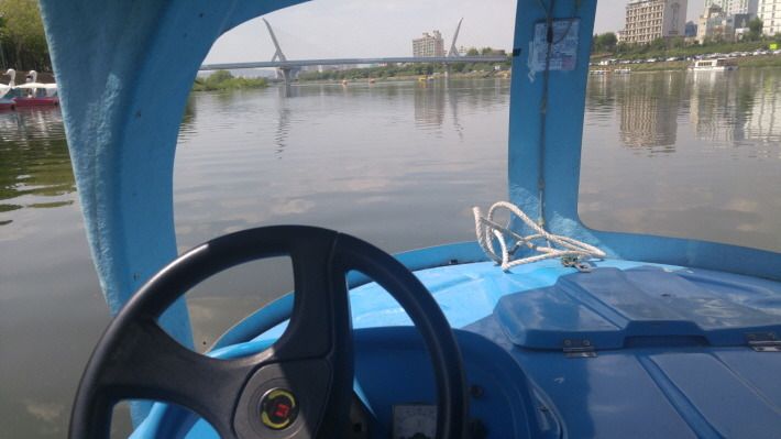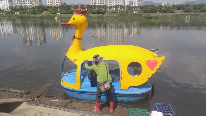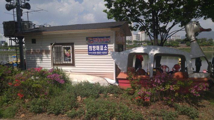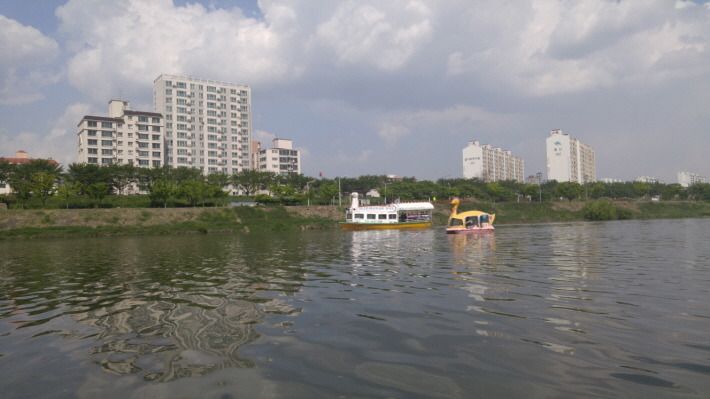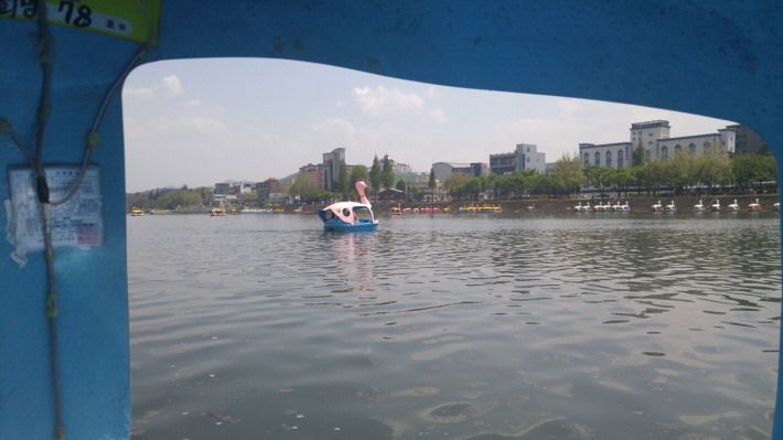 유원지를 찾은 김에 오리배를 타고 금호강 유람에 나섰습니다.