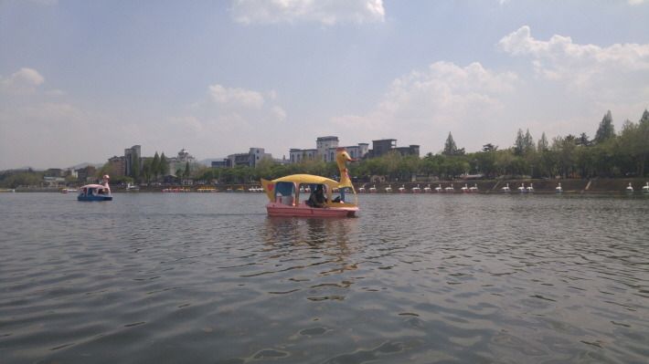 발로 젓는 페달오리배는 3~4인은 15,000원, 2인은 10,000원입니다.