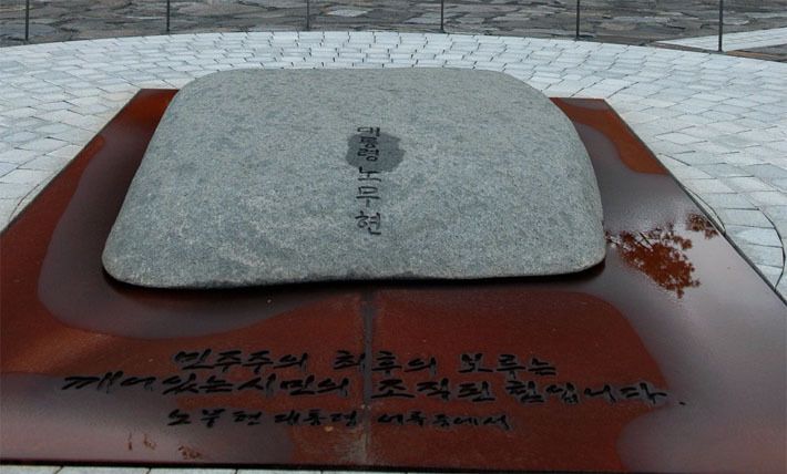 노무현 묘비. 민주주의 최후의 보루는 깨어있는 시민의 조직된 힘입니다. -노무현 대통령 어록 중에서 -