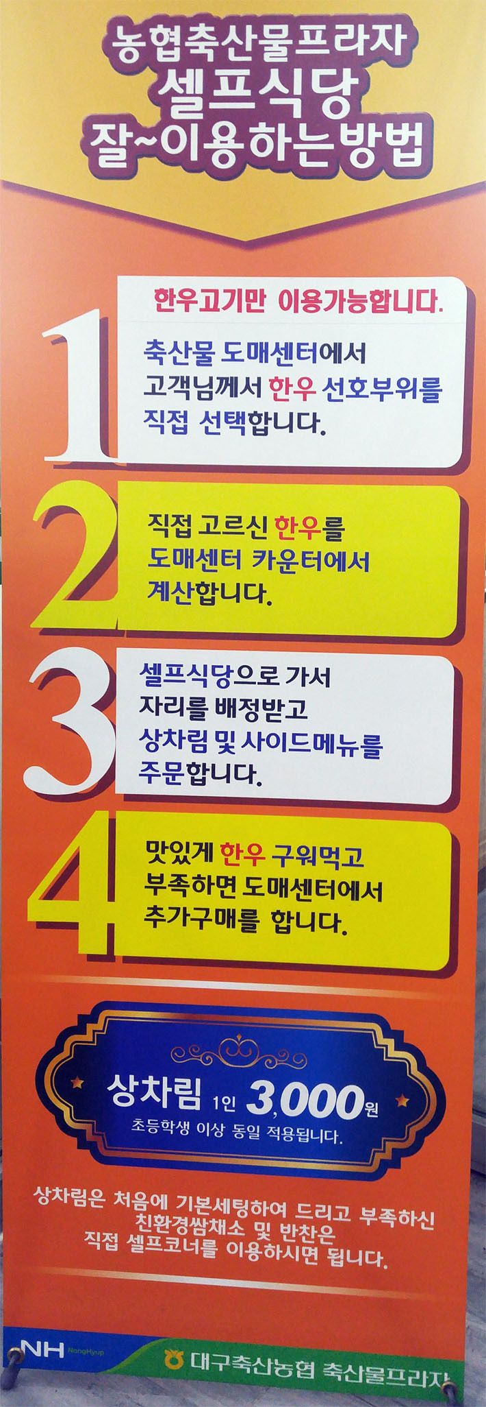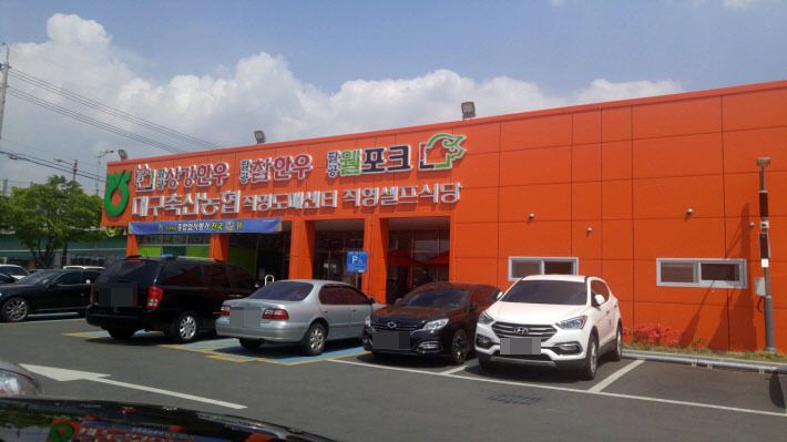입구 간판에는 '대구축산농협 직영도매센타 직영셀프식당'이라고 돼 있습니다.