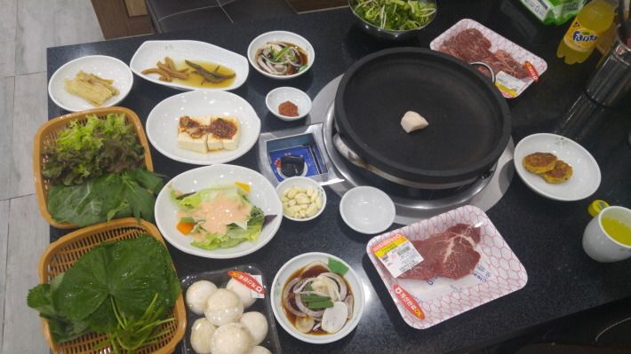 고기는 축산물프라자에서 구입하고, 바로 옆 식당에서 1인당 상차림 비용 3,000원을 받는 스타일의 맛 집입니다.