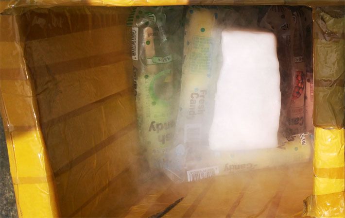 사진을 찍고 뚜껑까지 여니 얼음을 넣은 상자에서 냉기가 올라온다.