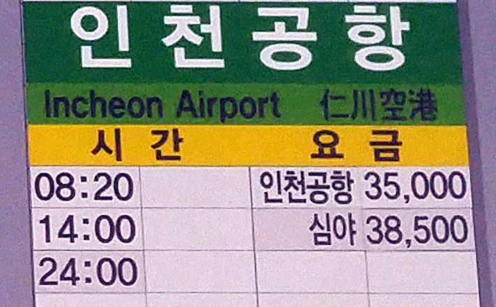▶ 대구(서부정류장)~구미~인천국제공항(요금 35,000원, 심야요금 38,500원)