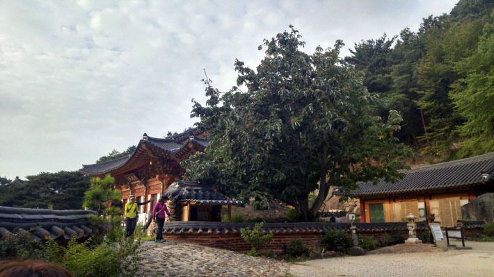 함양 서암정사 대웅전 앞에 이르면 거대한 나무 한 그루가 여행자를 맞이한다.