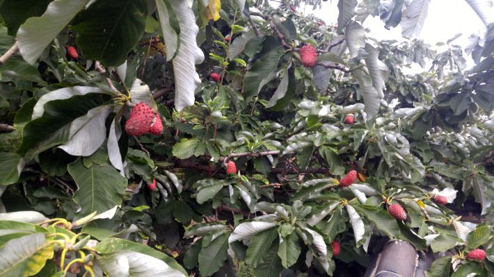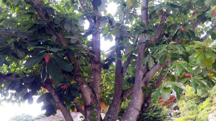 희한하게 생긴 붉은 열매도 주렁주렁 달렸다.