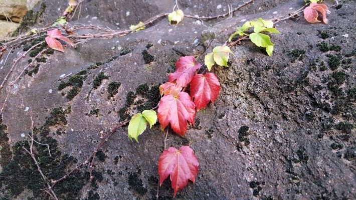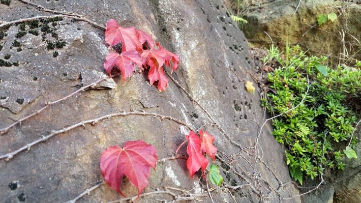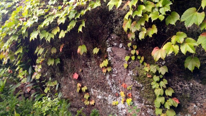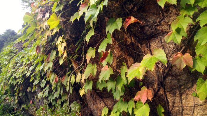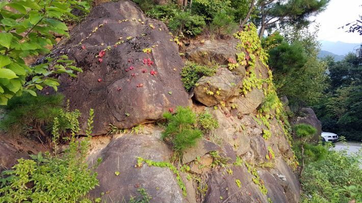 바위엔 어김없이 담쟁이가 달라붙어 바위를 감싼다.