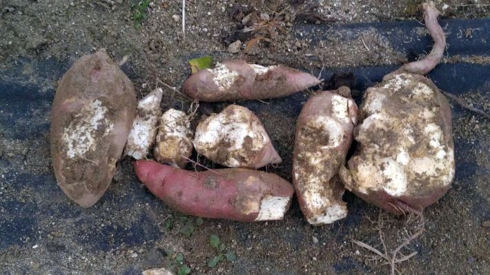 멧돼지 습격으로 고구마 밭을 쑥대밭으로 만들었습니다.