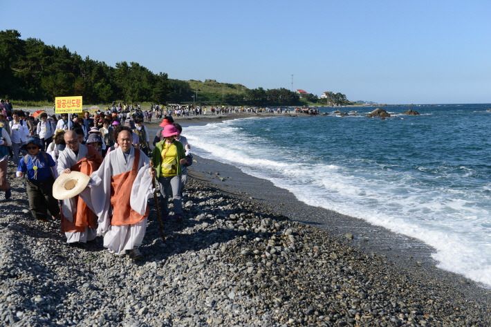 지난 9월 13일 경주 감포읍 감포관광단지 앞 바닷가에서 열린 한국불교대학 대관음사 방생법회.