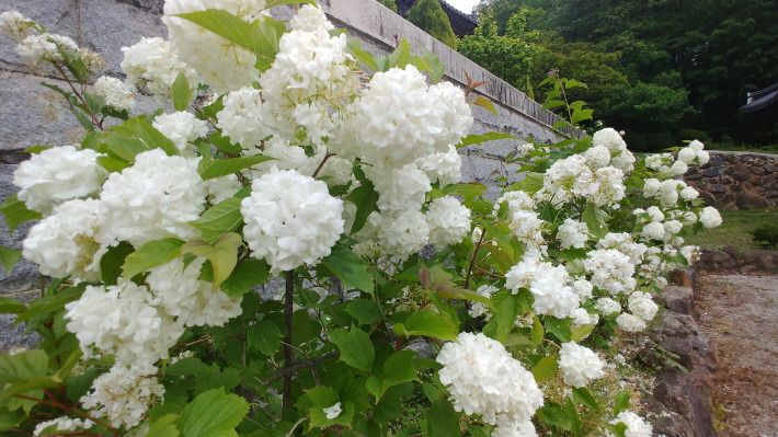 불두화(佛頭花). 꽃 모양이 부처님 머리모양을 닮았다 하여 불두화라 부르며, 열매를 맺지 않는 상징적 의미로 사찰에 많이 심겨져 있다.