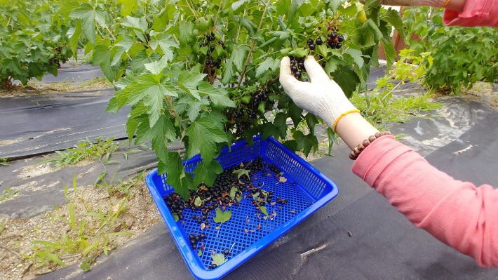지난해 심은 2년생 블랙커런트 묘목(올해 3년생)에서 첫 수확하는 기쁨을 만끽했다.