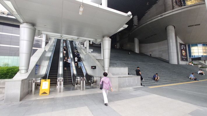 역 앞 중앙계단 좌측으로 에스컬레이터가 보이는데, 이걸 타고 끝까지(3층) 올라갑니다.