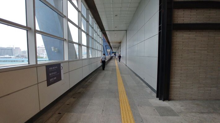 그러니까 노란색 장애인용 도보 안내표지석이 보이는 데서, 우회전하면 긴 복도가 나타납니다.