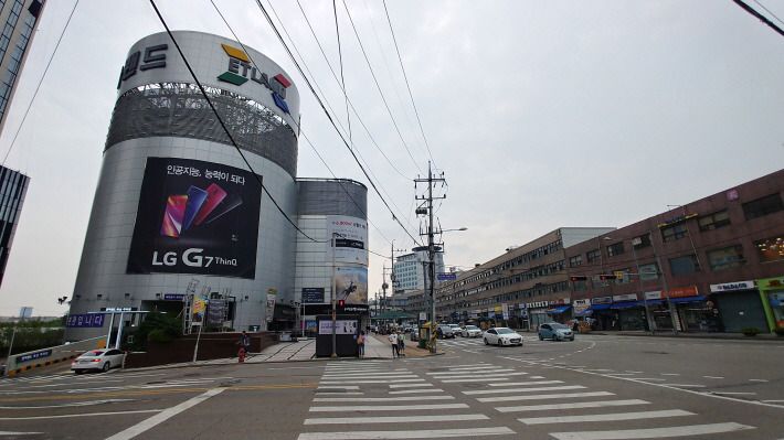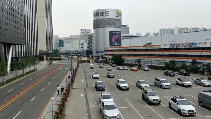 복도를 따라 지상 도로가 나올 때 까지 쭉 걸으면, 전자상가가 밀집한 지역이 나오는데, 바로 이곳이 전자상가가 밀집해 있는 서울 용산전자상가에 도착한 것입니다.