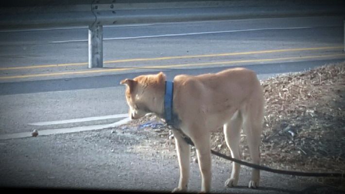 목줄이 매져 있지만 줄이 길어, 이리 갔다 저리 갔다 할 수 있는 반쯤의 자유는 있다.