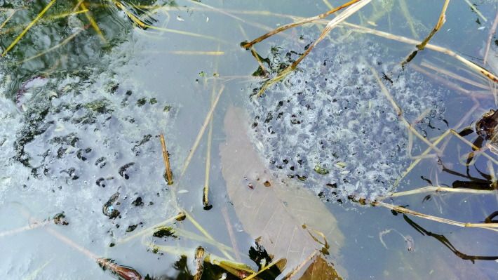 텃밭 작은 웅덩이에 개구리가 알을 낳았습니다.