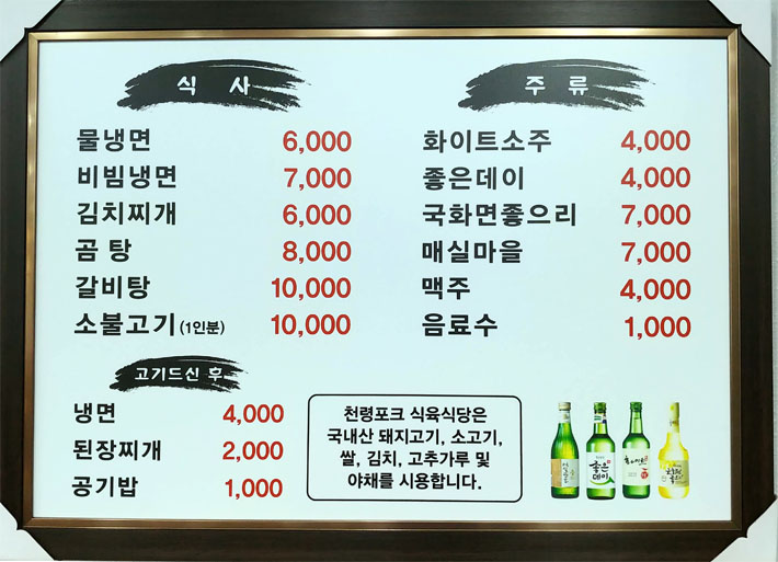 ☛ 고기 드신 후, 냉면 4,000원, 된장찌개 2,000원, 공기밥 1,000원에 모시고 있습니다.