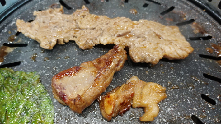 지난 주, 2명이 돼지갈비 3인분을 주문하여 먹었는데, 양도 적당하고 맛도 있었습니다.