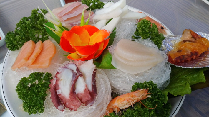 평소 좋아하지만 농촌에 산 이후 그동안 먹어 보지 못했던 싱싱한 해산물을 먹으니 기분이 그지없이 좋습니다.