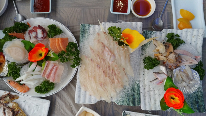 모처럼 내륙지방에 사는 사람이 바닷가에 오니 회가 먹고 싶어집니다.