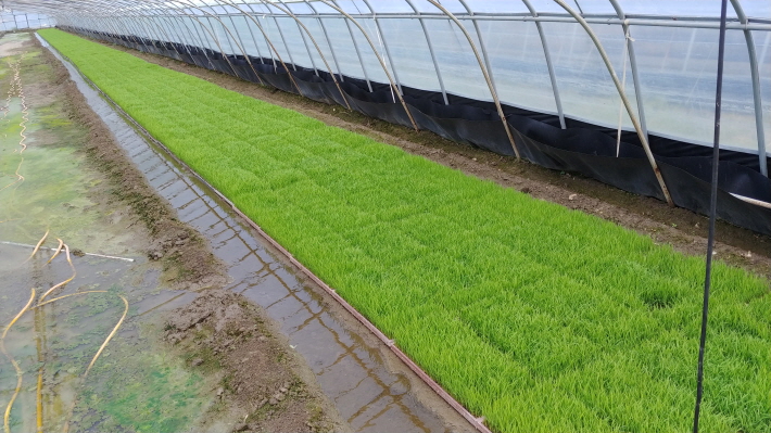 올 벼농사에 필요한 모가 온실에서 잘 자라고 있다.