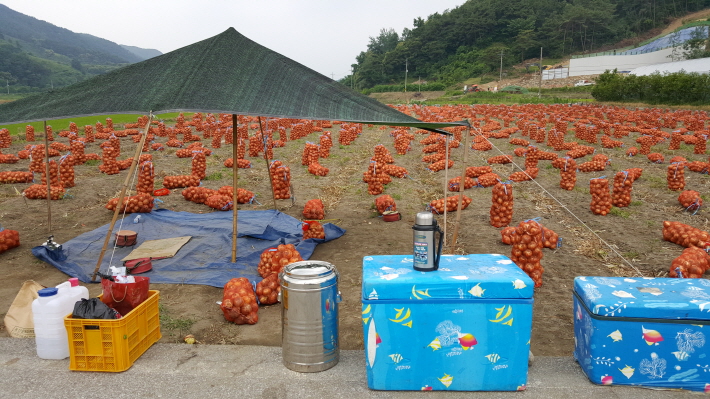 양파와 마늘은 수확 중에 있으며, 예약하신 분들에 대하여는 충분히 건조 한 후, 택배 발송 예정으로 있습니다.
