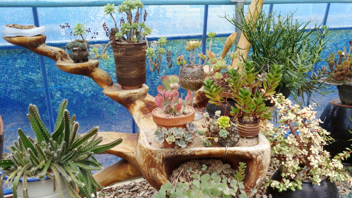 수십 여 종의 다육식물은 다양한 소재와 함께 예술작품으로 승화돼 여행자를 맞이한다.