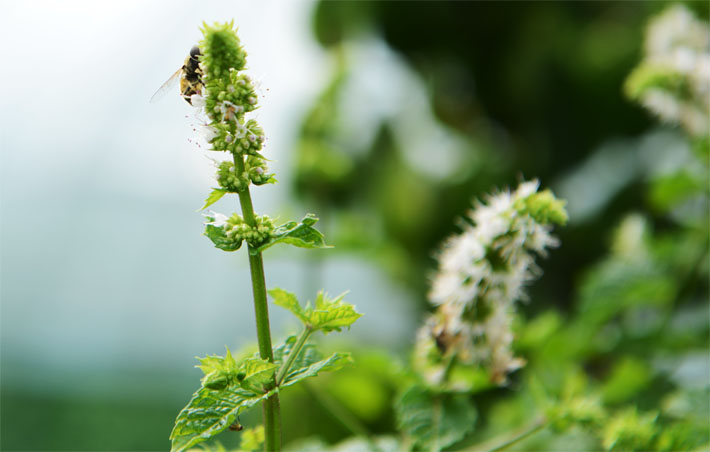 [행복찾기] 허브식물 종류, 스피아민트에 앉은 벌