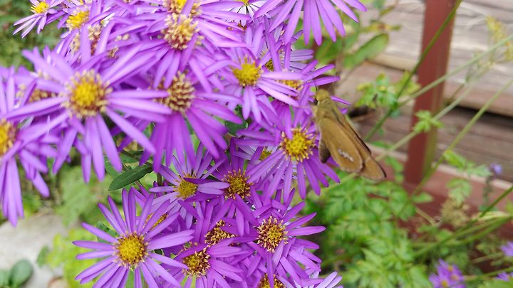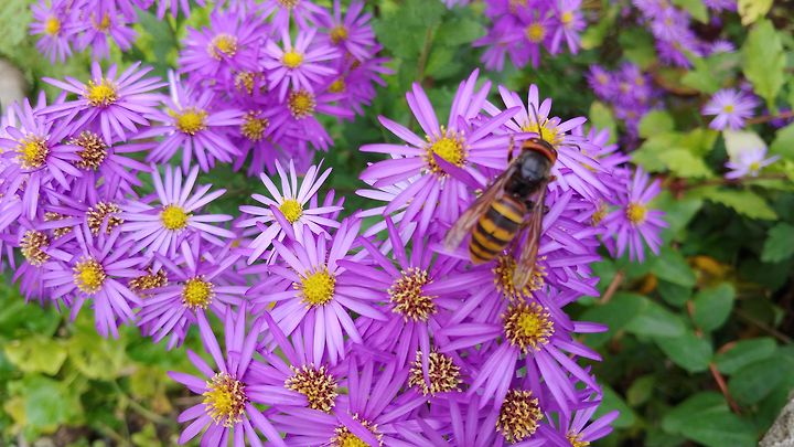 쑥부쟁이 야생화에 벌과 나비가 날아 들었습니다.