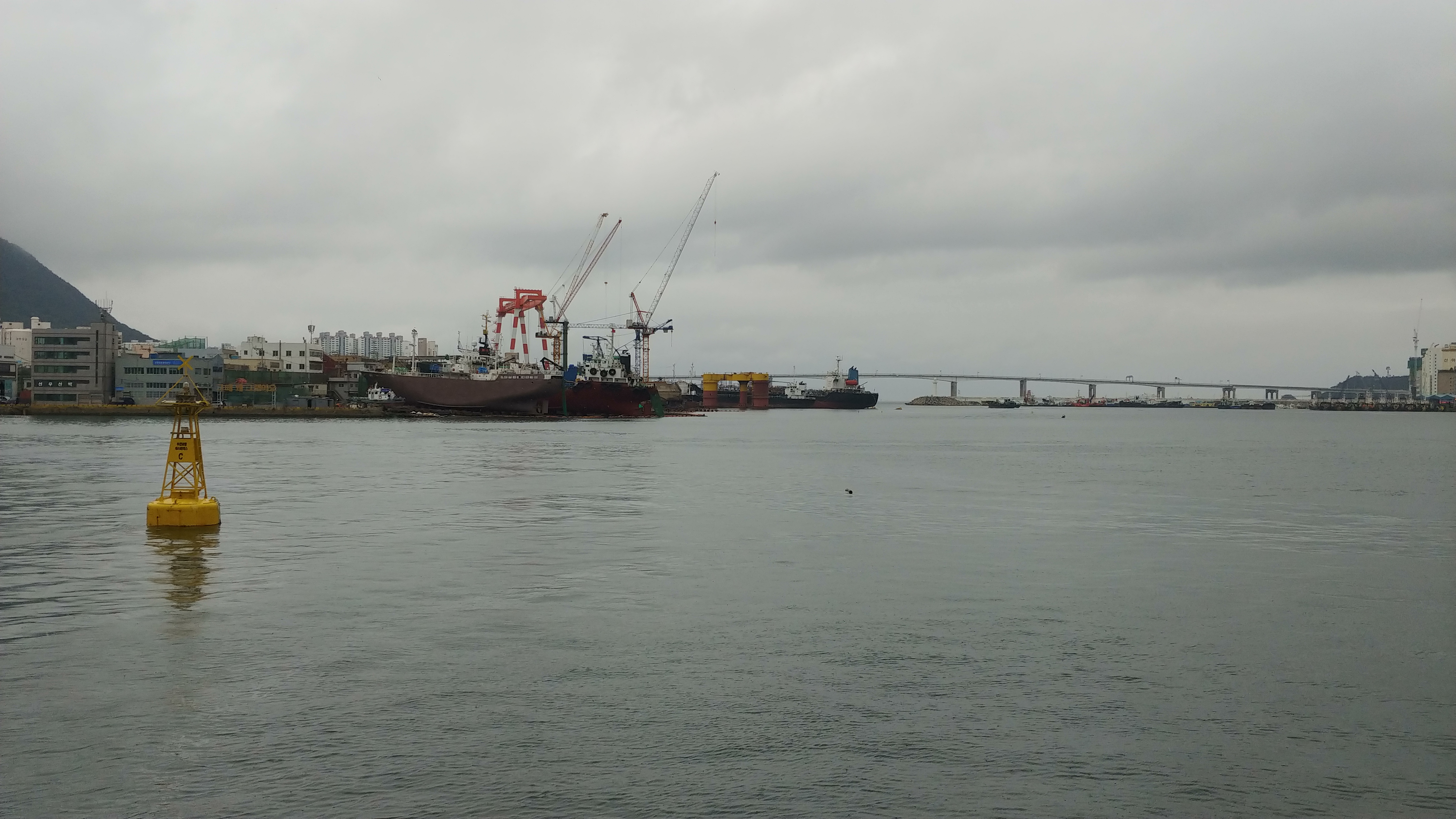 비내리는 창밖을 바라보는 부산항 모습이 정겹습니다.