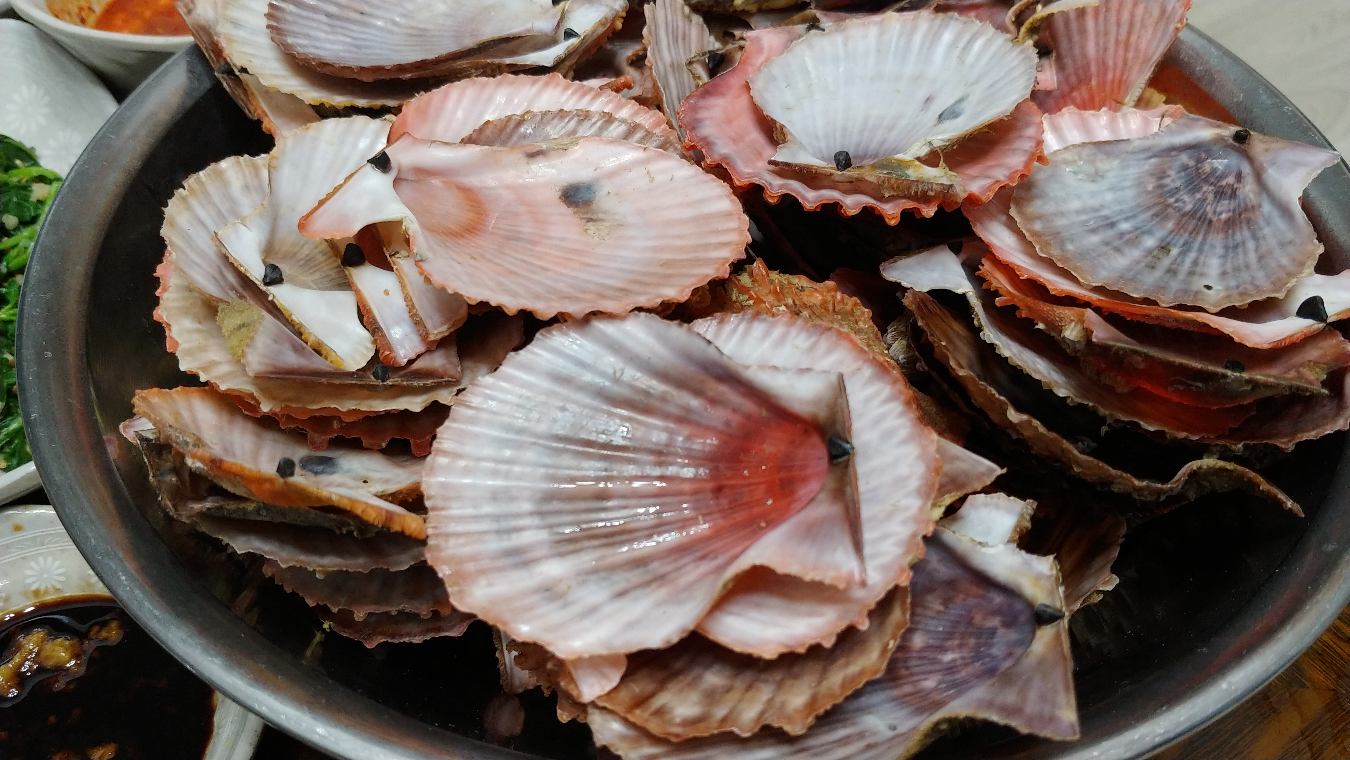 이웃과 나눠 먹는 생가리비 회와 쪄 먹는 가리비에 소주 한 잔.