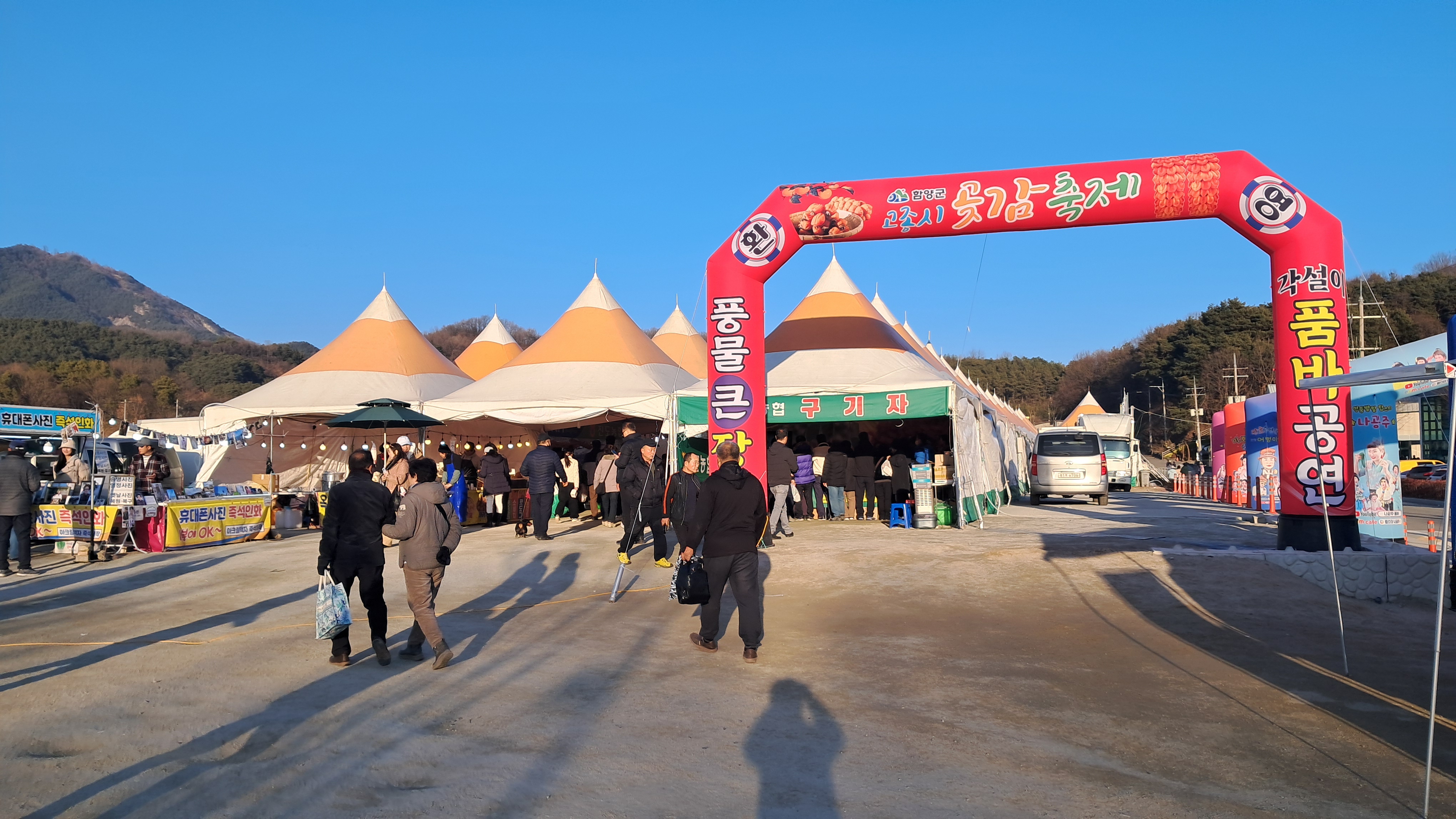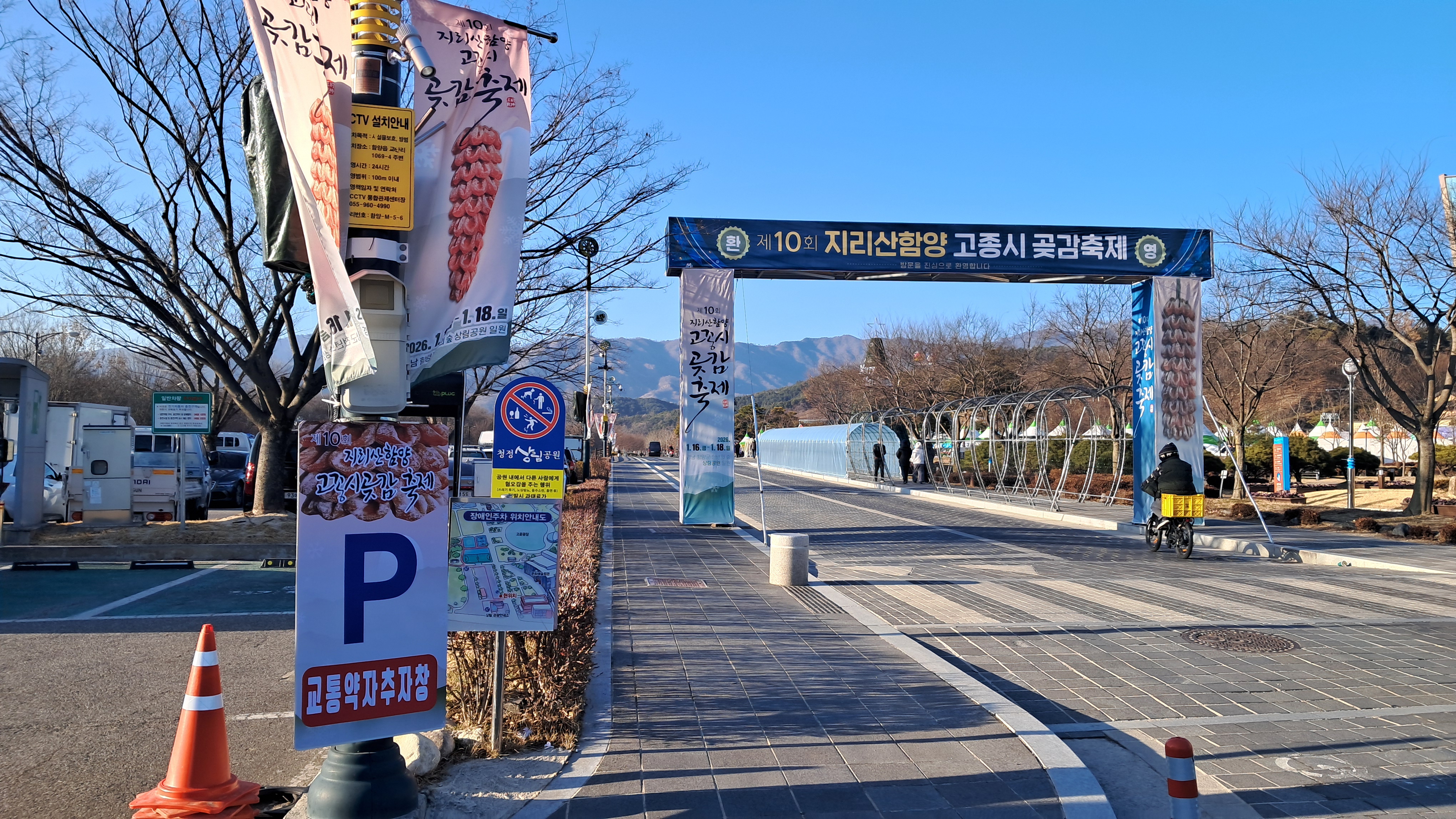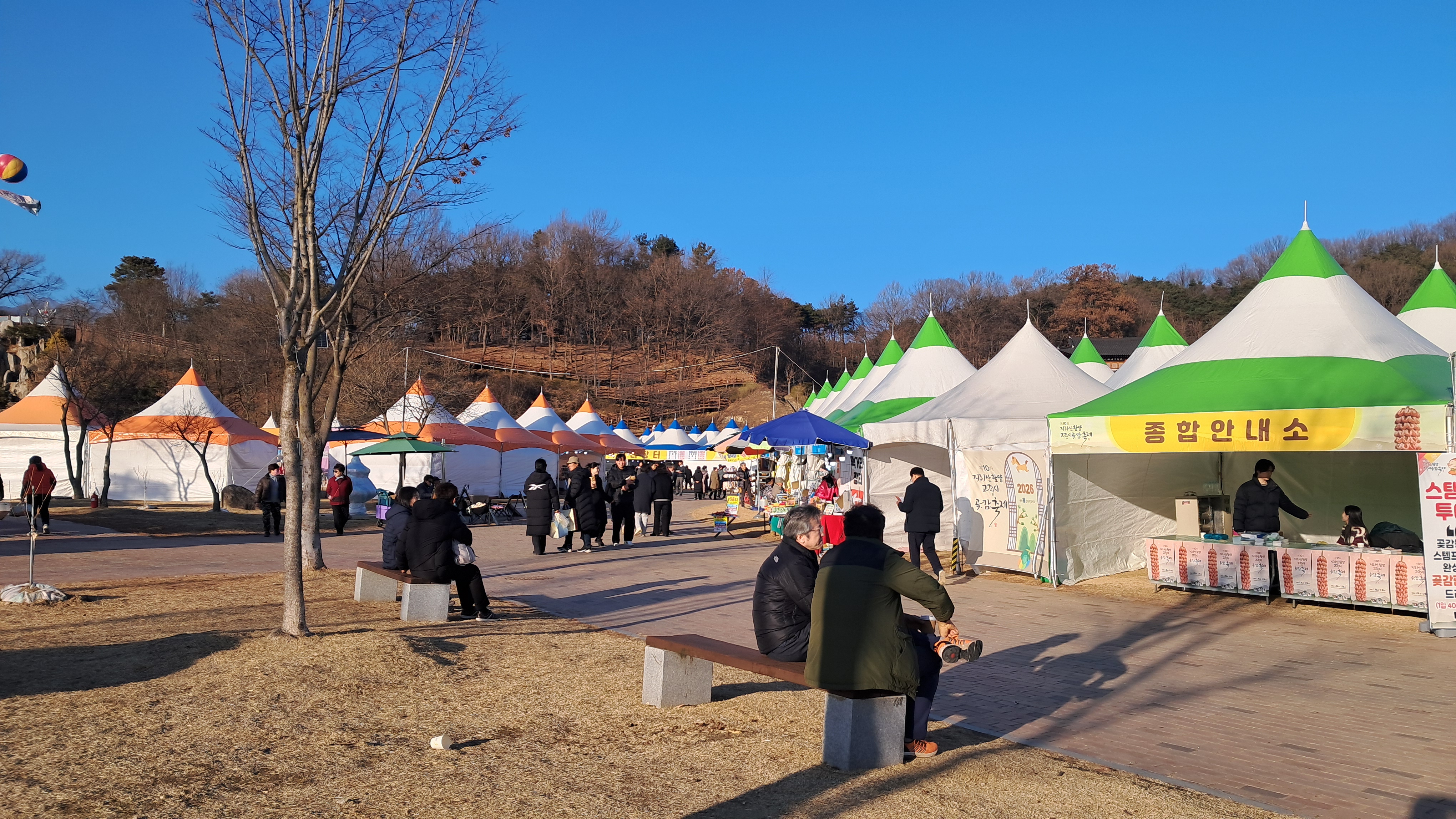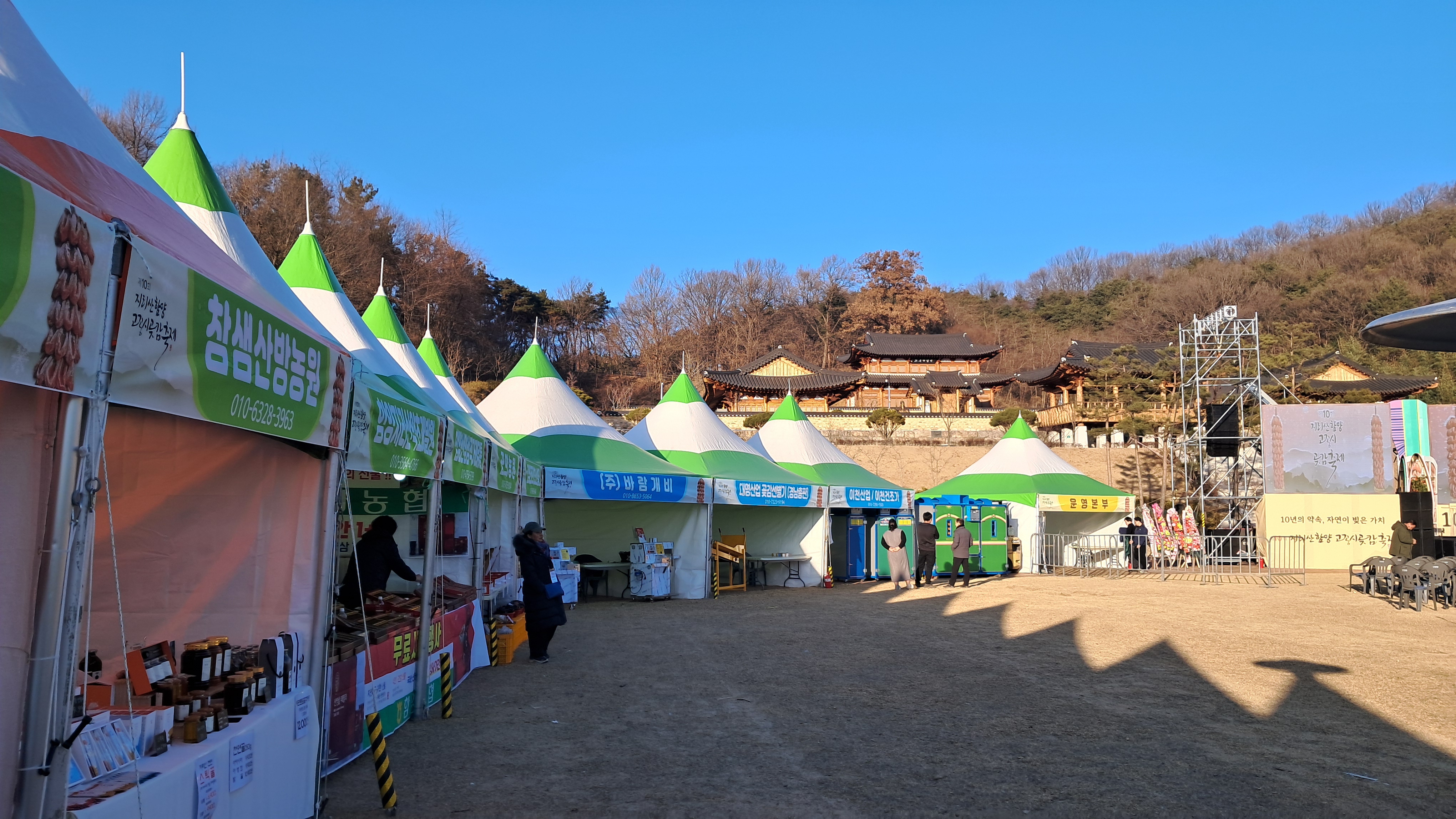 겨울철 함양 가볼만한 곳으로 상림공원에서 열리는 지리산곶감축제장을 적극 추천합니다.