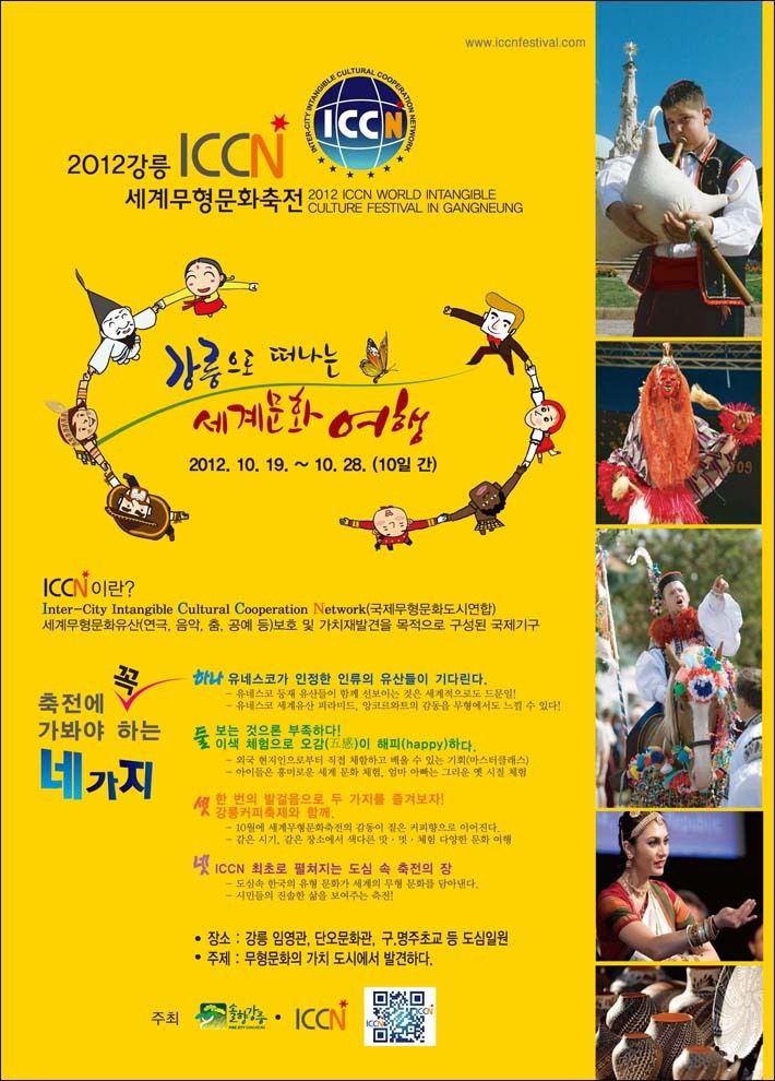 『2012강릉ICCN세계무형문화축전』은 ICCN 회원도시 등 해외 23개 도시와 국내 38개 팀들이 모입니다.