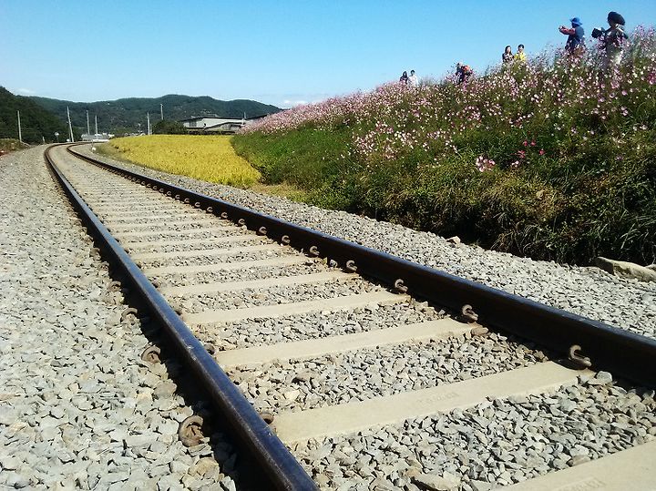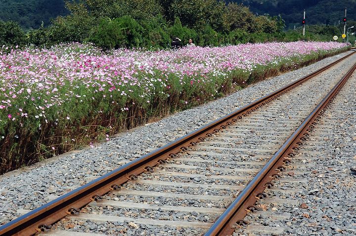 아, 한 가지 덧붙여 알려 드립니다. 철도 현대화 사업으로 경전선 복선(왕복노선)사업이 한창 진행되고 있습니다. 이 사업은 2015년 준공예정으로, 복선사업이 완료되면 구.철길은 폐쇄된다고 합니다. 그래서 다시는 북천역에서 코스모스를 볼 수 없을까 걱정이 돼 북천역에 문의한 결과, 새로운 북천역사를 지을 계획도 있다고 합니다. 쾌적한 열차환경도, 시간이 단축되고 빠른 여행도 좋지만, 그래도 아쉬움이 많이 남을 것만 같습니다.