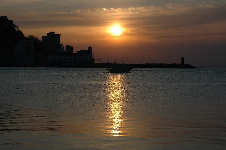 거제 장승포항의 일출. 고기잡이 나갔던 어선이 어둠을 뚫고 귀항하고 있다.
