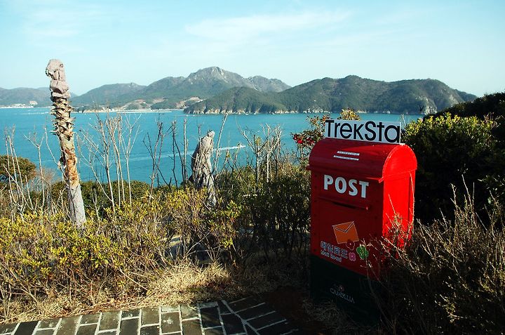 섬의 북쪽 언덕에는 빨간 우체통이 하나 서 있습니다.
