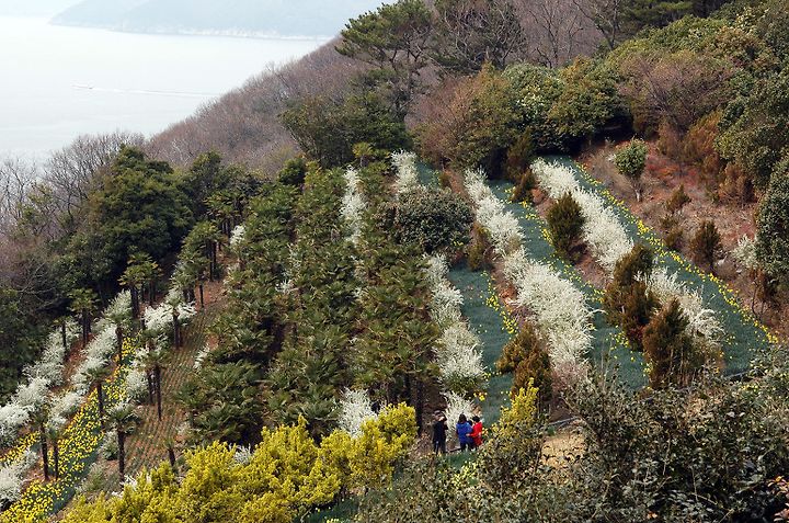 계단식 기다란 밭에는 수선화가 물결을 인다. 봄바람에 살랑거리며 노랗게 미소 짓는 모습이 정말로 아름답다. 반대 쪽 밭에 피어난 수선화도 자기를 봐 달라 아우성이다. 하는 수 없이 같이 놀아 줄 수밖에 없다. 한동안 그렇게 수선화와 춤추며 놀았다.